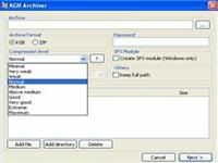 Cài trong Windows XP, nó sẽ tích hợp vào Explorer và bạn có thể sử dụng ngay bằng nút chuột phải với bất cứ file nào ở đâu trong Explorer. Hoặc bạn cũng có thể dùng ngay 2 chương trình qua một trong hai icon là KGB Archiver Compress (nén) hoặc KGB Archiver Decompress (giải nén) ngay trên desktop. Bạn có thể chọn mức độ nén cao nhất (maximum) nhưng phải chờ khá lâu, hay chỉ cao (high) hoặc trung bình (normal) sẽ nhanh hơn.